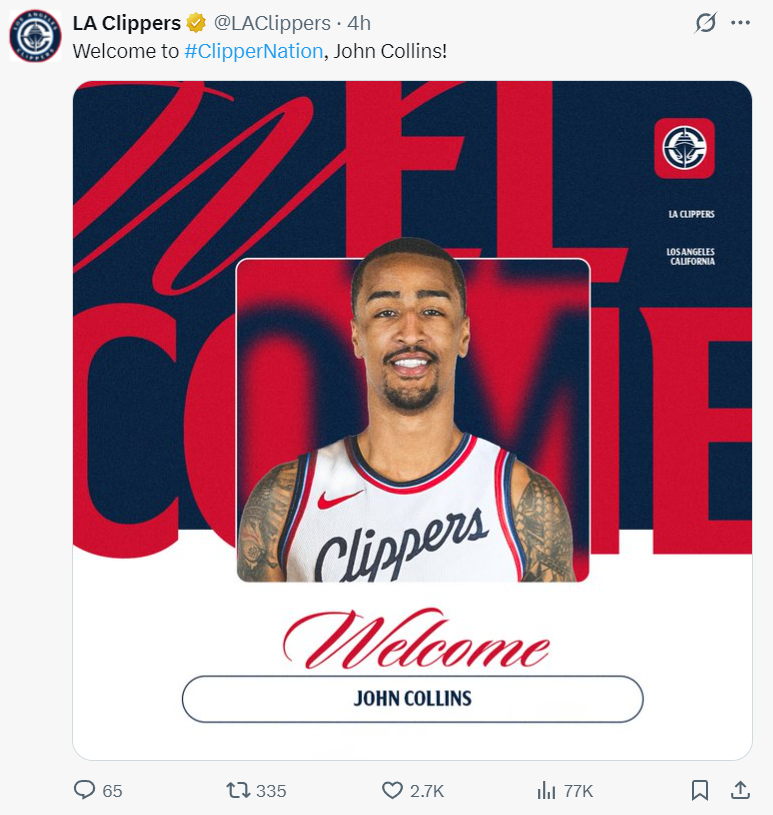 随后快船官方已经得到约翰-科林斯,科林斯还剩最后一年的合同,他身高2.08米司职PF,这让科怀-伦纳德受益回到自己优势最大的三号位,小卡防守端就不需要顶防比自己尺寸更大的四号位,这可以减轻他的体能支出。