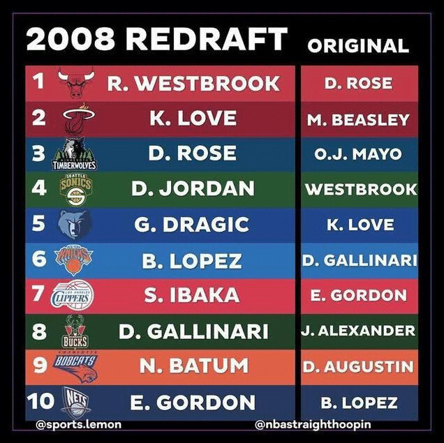 美媒重排08届选秀顺位:小乔丹逆袭,罗斯仅第3,状元无悬念