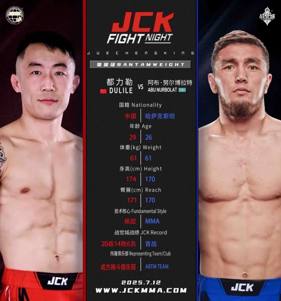 JCK觉城之夜101,将于2025年7月12日在JCK战觉城国际格斗中心打响,头条主赛迎来重磅对决。2024年雏量级“赏金之王”都力勒时隔1年回归赛场,急需找回状态的他并没有遇到“软柿子”,而是一位十足的“硬茬”,来自哈萨克斯坦的冠军选手阿布·努尔博拉特。
